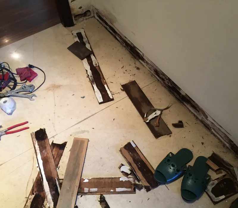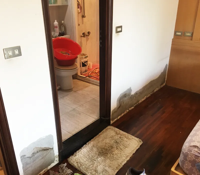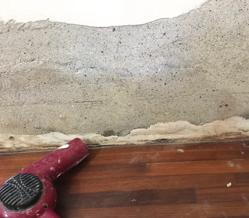 施工完成後,樓梯牆角與浴室門邊地板明顯乾燥許多,困擾多時的滲水情形成功改善,恢復了乾爽舒適的生活環境。