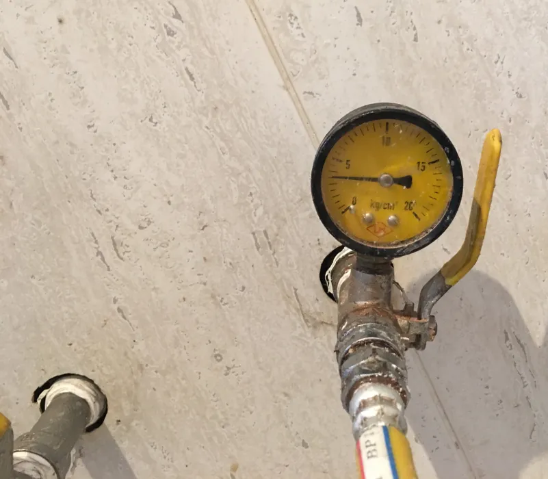 吾友宅修到場檢查後,發現門檻轉角存在滲水缺口,樓梯轉角牆面含水率過高,呈現出可能有管線回滲的現象。