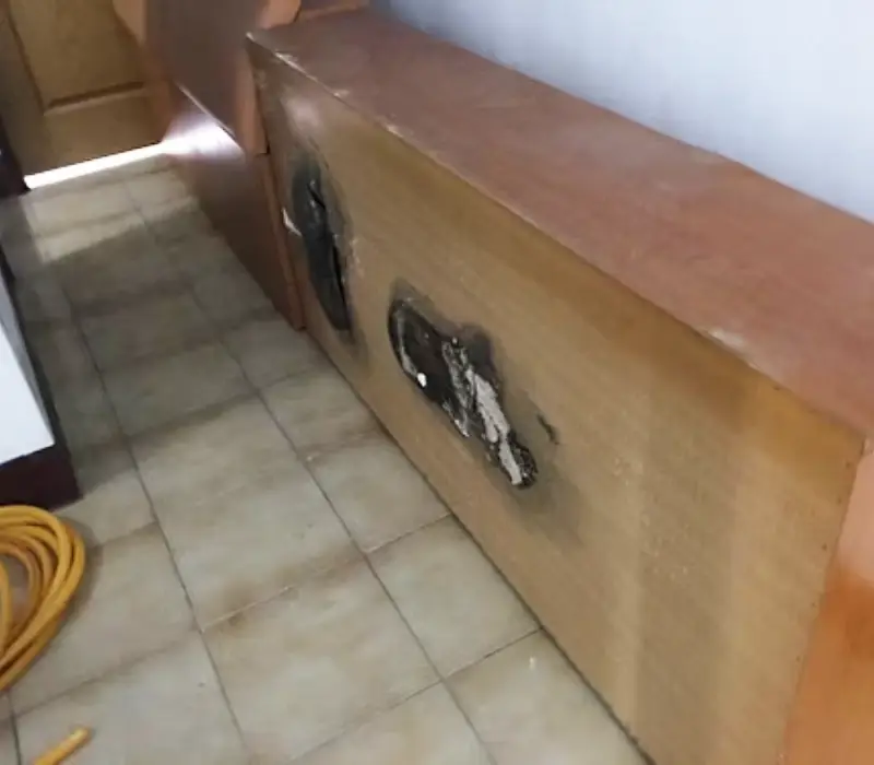 永康區一處透天民宅,屋主反映床頭櫃背板長期潮濕滲水,牆面出現嚴重壁癌,漏水問題已持續一個月未解。