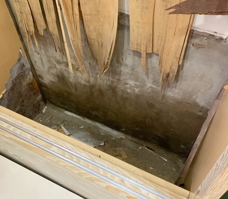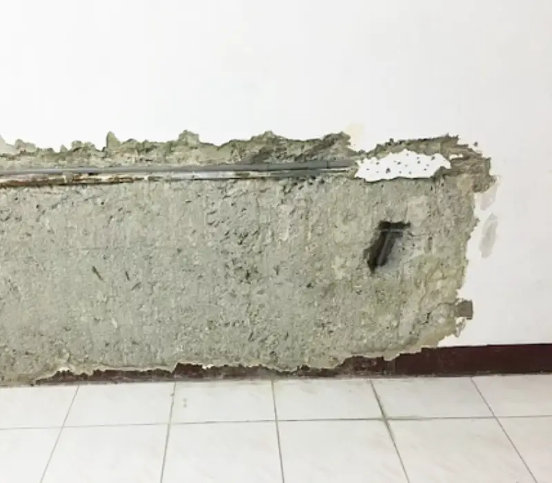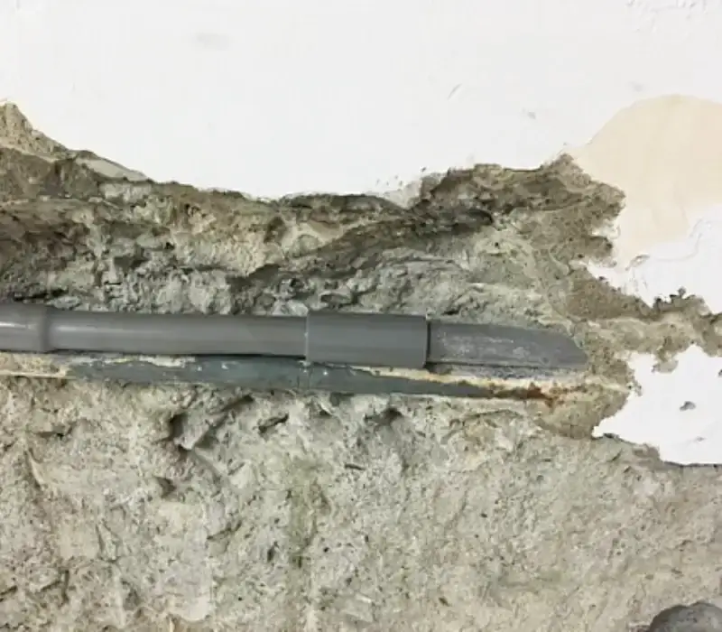 經查發現,鄰宅後方增建牆面與套房裝修施工時,水管破損與防水層未完善,導致跨牆滲漏入本宅牆體內部。吾友宅修依現場狀況進行牆面破除,釐清滲水路徑,並採用水管測壓確認系統管路穩定後,施作專業止漏灌藥與防水塗層處理。