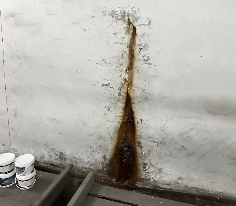 本案為社區大樓地下車道牆面長期滲水問題,牆體表面出現嚴重壁癌、鋼筋鏽蝕、粉化剝落現象,影響結構安全與空間美觀。